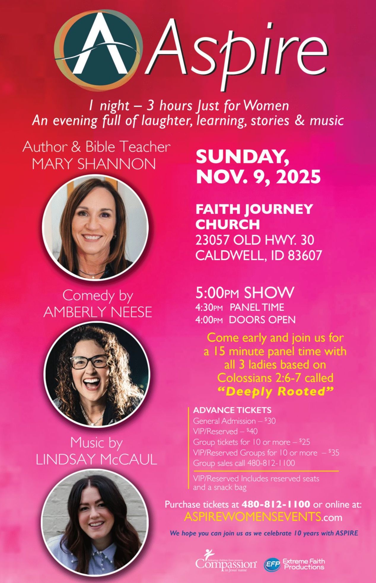 Help us spread the word about Aspire! Please consider distributing these fliers to your bible study or small group. Check out our Groups page for information on receiving other promotional materials.